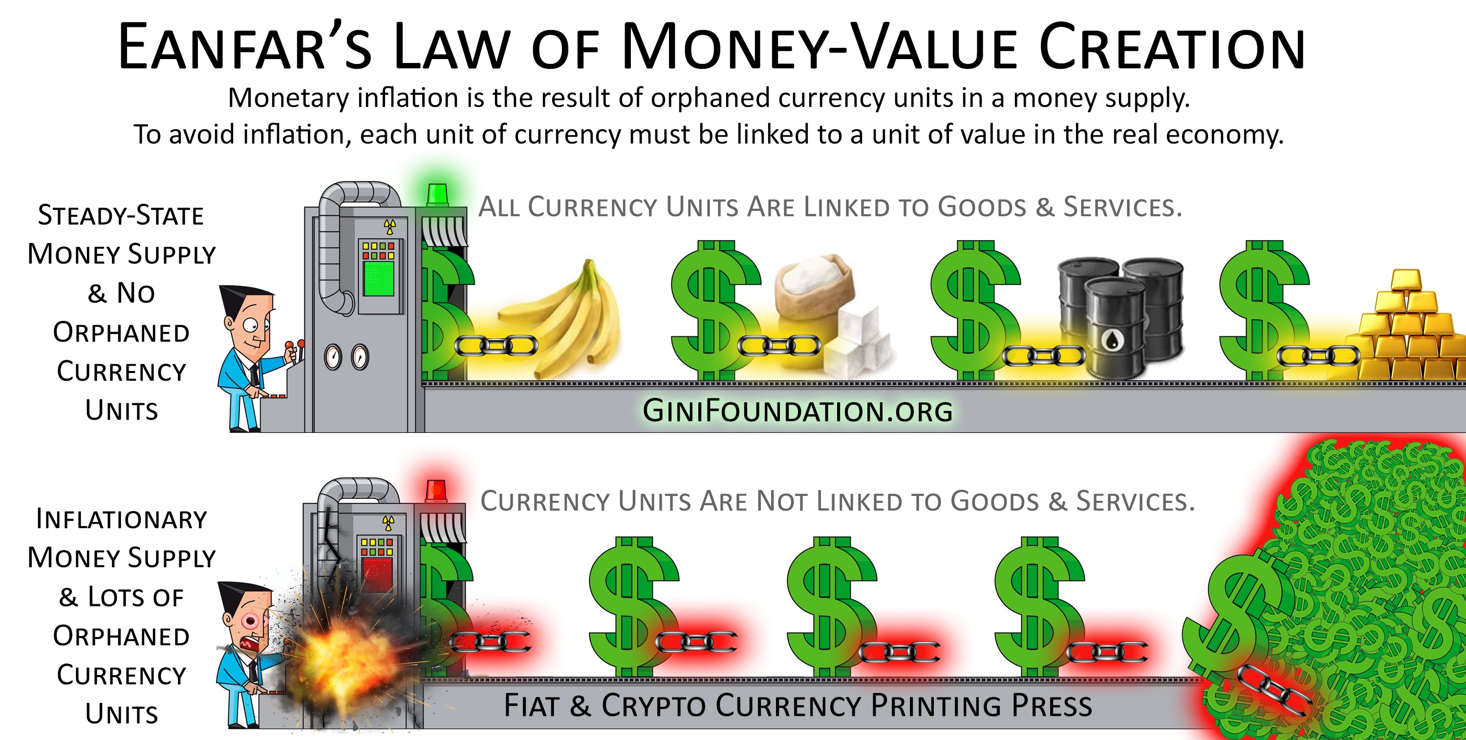 Some economically savvy crypto enthusiasts might observe that there have been a few examples of “air drops” where project teams gave their cryptocurrencies away for free without appearing to link each currency unit to a corresponding unit of value. This might seem like it violates our Law of Money-Value Creation, but it does not. Air drops only work in unique niche applications where the tokens themselves unlock some form of utility value offered by the network, e.g., storage capacity, computing capacity, or some other valuable service.